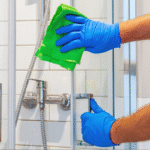 Deep cleaning of the shower area, bathtub, and glass partitions. Scrubbing and descaling of taps, faucets, and showerheads. Polishing of chrome fittings.